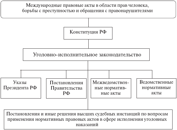 Понимание уголовно-исполнительного законодательства в широком смысле во многом определяется сложившейся традицией правового регулирования исполнения уголовных наказаний, когда в советский период в нем доминировали ведомственные нормативные правовые акты. В настоящее время рассмотрение уголовно-исполнительного законодательства в широком смысле позволяет выделить все существующие формы (источники) уголовно-исполнительного права (рис. 2).