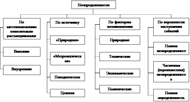 - «природную», обусловленную неполнотой информации, связанной с тем, что в силу объективных причин не все влияющие на результат решения факторы контролируются и прогнозируются, а значит должны рассматриваться как случайные;