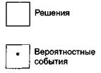 На втором этапе строим дерево решений. Оно состоит из двух основных частей: «решений» и «вероятностных событий». Они представлены квадратами (рис. 3.1). Эти решения и вероятностные события связаны, что видно из последующих примеров.