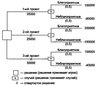 На основе данной таблицы выигрышей (потерь) построим дерево решений (рис. 3.5)
