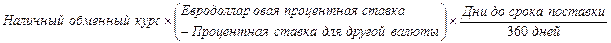 При базисной торговле дилер осуществляет контроль за размерами базиса по каждому контракту и проверяет правильность отражения разницы между процентными ставками. Теоретически правильное равновесие цены для фьючерсного контракта (когда валюта оценивается сопоставлением с американским долларом) должно быть следующим: