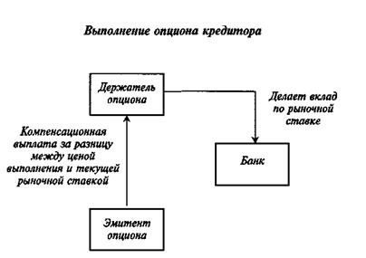Опцион кредитора представляет собой пут для "продажи" (предоставления ссуды) условной суммы на определенный срок и под установленный процент. Данная процентная ставка является ценой выполнения опциона.