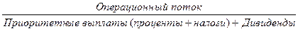 Его следует анализировать так же, как и коэффициент обслуживания долга. Если компания рассчитывает выплатить дивиденды, то поступления средств от ее операций должны значительно превышать общие затраты на приоритетные выплаты и выплату дивидендов. Желателен коэффициент, превышающий 2,0.
