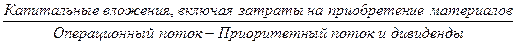 На протяжении длительного времени (хотя и не обязательно год за годом) компания должна быть способной финансировать большую часть капитальных вложений из собственного операционного денежного потока (даже с учетом выплат дивидендов акционерам), лишь малая часть расходов может покрываться за счет новых долгов. Другими словами, в долгосрочной перспективе разница между операционным потоком и приоритетным потоком должна приблизительно равняться капитальным вложениям, чтобы компания была в состоянии финансировать большую часть своих расходов из внутренних ресурсов.
