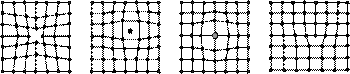Точечные дефекты (нульмерные)по размерам сравнимы с межатомными расстояниями. К ним относятся вакансии (свободные от атомов узлы кристаллической решетки являются вакантными), межузельные или дислоцированные атомы (атом находится в межузельном пространстве кристаллической решетки) и примесные атомы. Среди них различают атомы замещения и внедрения (рис. 1.2).