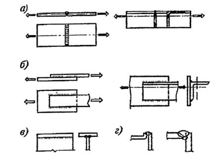 Вид сварного соединения определяется взаимным расположением свариваемых элементов. Различают стыковые, угловые, тавровые и нахлесточные соединения (рис. 4.1).