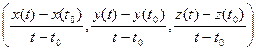 = (x (t)- x (t0), y(t)- y(t0), z (t) - z (t0)), то