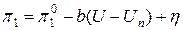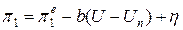 Напомним, что кривая Филлипса с учетом адаптивных инфляционных ожиданий выглядит как в формуле (11), т. е.