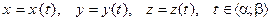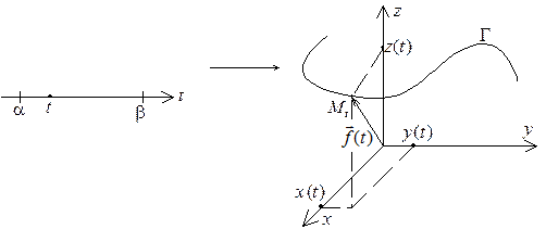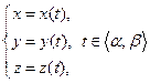 (2) есть координатная форма уравнения кривой G, расположенной в пространстве. Она каждому t,
