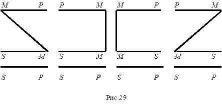 Различные расположения терминов в посылках можно изобразить в виде следующих схем: