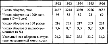Небезынтересно знать, что у нас дети рожденные не менее 1 кг, не считаются поздним выкидышем, их считают детьми. Они пополняют статистику смертности населения России. В табл. 4 представлены цифры количества абортов по России и удельный вес их в структуре материнской смертности.