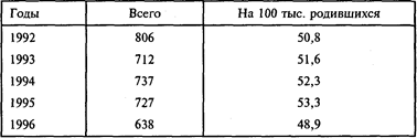 К сожалению, по-прежнему в России основным средством контрацепции является аборт, хотя это и небезопасно для здоровья женщины. Так, среди женщин, перенесших один аборт, заболевание половой сферы имеют 41,6%, 4–5 абортов – 71,8%. Около 40% женщин пользуются малоэффективными средствами контрацепции (определение «опасных» дней, прерванный половой акт и т.д.), и только 23,5% женщин применяют современные методы (внутриматочные средства – 19,8%, оральные контрацептивы – 3,7%). Самый низкий коэффициент рождаемости в нашей стране был в 1989–90 и 1992–1996 гг. За 1991 год было сделано 3,9 млн. абортов, в 1995 – уже 5 млн.