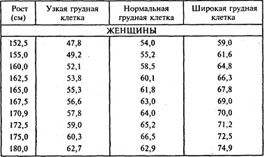 Для нормального веса можно использовать данные табл. 8, в которой в зависимости от росто-весовых, конституционных признаков легко узнать данные для мужчин и женщин.