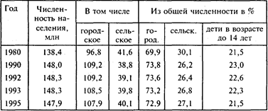 По данным Межведомственной комиссии по экологической безопасности (Совет безопасности России), на которой рассматривался вопрос об ухудшении демографической ситуации, сообщалось: «...население Российской Федерации за 1995 г. уменьшилось на 0,2% (380 тысяч) и составило 148 млн. человек. Число умерших превысило число родившихся в 1,6 раза.