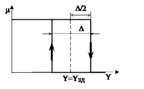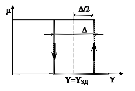 Статическая характеристика 2-х позиционного идеального регулятора с положительной зоной нечувствительности (ПЗН).