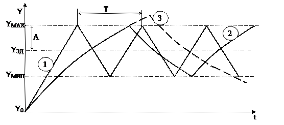 Переходный процесс на выходе объекта при работе регулятора – автоколебательный процесс со следующими характеристиками: