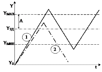 2 – характеристика на выходе объекта при работе регулятора, выпавшего из алгоритма своей работы.