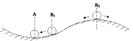 Шар переведенный из положения А в положение В, последний после ряда колебаний вернется к первоначальному состоянию равновесия.