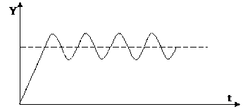 Отклонение регулируемой величины приходит к установившемуся значению с затухающими гармоническими колебаниями.