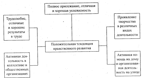 Сущность личности и поведение ребенка как «удовлетворительные» оцениваются при условии одобрения всеми «экспертами» общей тенденции ее нравственной направленности. В прилежании и успеваемости допустимы колебания. Ученик получает не только пятерки и четверки, но и тройки, даже двойки, которые он стремится исправить. Он прилежно и успешно проявляет себя в одном-двух ведущих видах деятельности при отрицательном балансе по остальным (успехи в труде, самодеятельности, спорте; срывы в учебе, в культуре поведения, в домашних отношениях либо наоборот). Важно только, чтобы школьник предпринимал волевые усилия для исправления недостатков в прилежании и успеваемости.