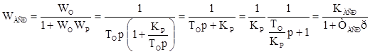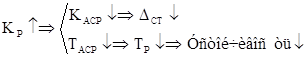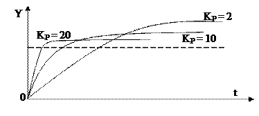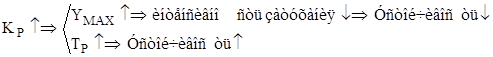 Система устойчива, но регулирование идет со статической ошибкой. Величина ошибки зависит от КР и тем меньше, чем больше КР. Поэтому КР выбирают согласно условию КР < KPKP, где значение KPKP дает появление колебательного процесса.