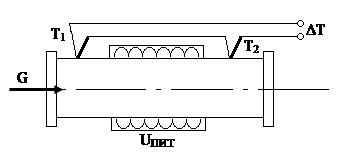 Зависимость перепада температур до и после участка нагрева связана с расходом следующей закономерностью: