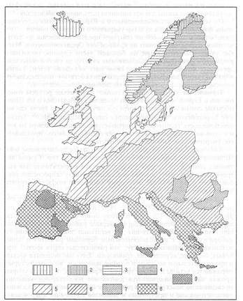 II СЕВЕРНАЯ И СРЕДНЯЯ ЕВРОПА: 1 - Фенноскандия; 2 - Среднеевропейская равнина; 3 – Горы и равнины Средней Европы (Герцинская Европа); 4 – Британские острова; 5 – Альпийско-Карпатская страна.