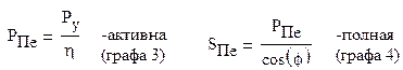 Из каталогов сюда вносятся данные по КПД, коэффициенту мощности и установленной мощности электродвигателя (графа 6).