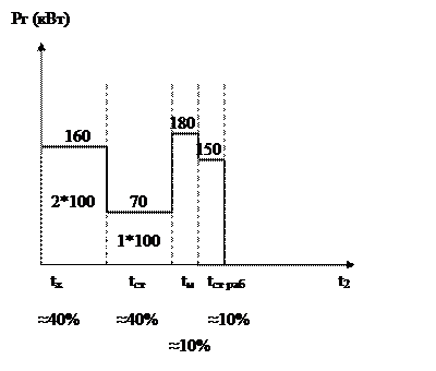 2. Режим пиковой нагрузки обеспечивается включением резервного генератора, либо кратковременным отключением второстепенных потребителей. Отсюда следует, что мощность резервного агрегата должна быть не меньше Рэ, то есть обеспечивать режим пиковой нагрузки.