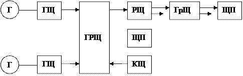 ГЩ – генераторные щиты (могут отсутствовать, либо их функции передаются генераторной секции ГРЩ).