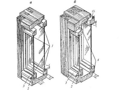 Оконные блоки со спаренным переплетом экономичны по расходу древесины, но у них теплопотери больше, чем у блоков с раздельным переплетом.
