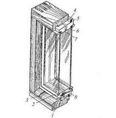 Оконная коробка представляет собой раму, к которой крепятся оконные переплеты (рис. 3.43). При значительных размерах окон для повышения их жесткости коробки могут иметь дополнительные внутренние бруски — импосты, которые располагают вертикально и горизонтально.