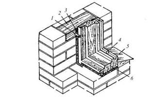 (переплеты и подоконная доска не показаны): 1 — ерш-костыль; 2 — антисептированный вкладыш; 3 — пакля;