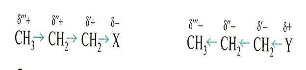 Индуктивный эффект-эффект передачи электронного влияния по сигма связи. Например: