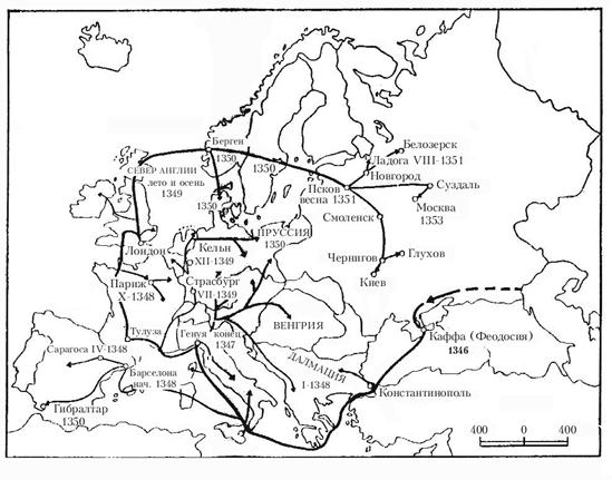 Распространение «Черной смерти» в Европе
