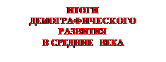 Рождаемость оставалась высокой и несколько уменьшилась детская смертность. Все это способствовало росту населения, особенно увеличившемуся в Европе в X – XIII вв., где в то время наблюдался настоящий демографический бум. Но как и в Европе, так и в других регионах мира периоды демографического подъема сменялись упадками, падением численности людей, что вызывалось как природными, так и социально-политическими факторами.