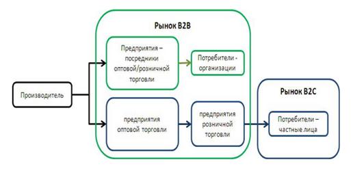 Таким образом, в зависимости от того, к какой категории торговых предприятий (оптовых или розничных) относится предприятие, оно ориентировано на рынок B2B или B2С.