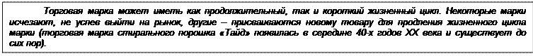 Самый длинный жизненный цикл имеют, как правило, товарные категории. Многие товарные категории остаются в стадии зрелости на неопределенное время. В настоящее время некоторые товарные категории вступили в стадию спада (газеты), а другие находятся в стадии роста (персональные компьютеры).