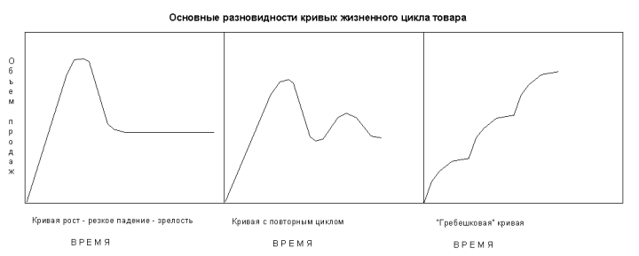 Можно выделить некоторые разновидности кривых ЖЦТ, например:
