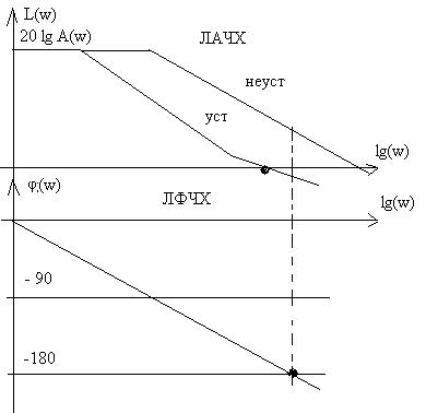 Замкнутая система устойчива, если при пересечении ЛФЧХ разомкнутой системы линии -1800 ее ЛАЧХ будет отрицательной