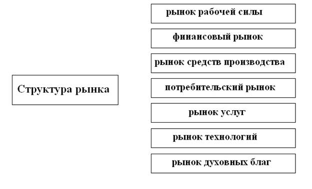 Рынок – это институт или механизм, сводящий вместе покупателей и продавцов отдельных товаров и услуг. Рынок как развитая система отношений товарного обмена представляет собой систему отдельных взаимосвязанных элементов большого рынка.