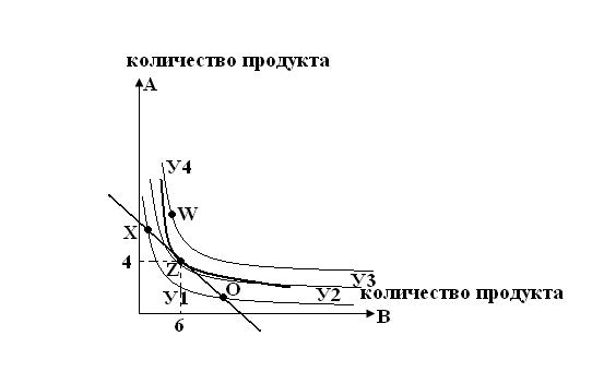 Бюджетные линии дают ответ на вопрос: что может приобрести потребитель, имея определенный денежный доход с учетом сложившихся цен на товары. Информацию о предпочтениях потребителя дают кривые безразличия. Кривые безразличия показывают, что хочет приобрести потребитель на определенный денежный доход. Они демонстрируют все возможные комбинации продуктов А и В, дающие потребителю равный объем удовлетворения потребностей или полезностей.