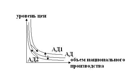 Изменения в уровне цен объясняют падающей траекторией совокупного спроса, а изменения в неценовых факторах вызывает смещение самой кривой совокупного спроса.