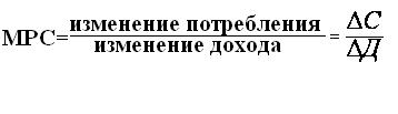 Потребление же, хотя различается по уровню доходов, но присутствует во всех семьях. Сбережение варьируется довольно в широких пределах и может достигать даже нуля ил отрицательной величины. Что касается С, то оно не может быть меньше определенного min, обеспечивающего биологическое существование. То, что домохозяйства употребляют определенную долю общего дохода после уплаты налогов, еще не гарантирует, что они будут потреблять туже самую долю при изменении величины дохода. Доля или часть прироста (сокращения) дохода, которая потребляется, называется предельной склонностью потребления (МРС) или это отношение любого изменения в потреблении к тому изменению величины дохода, которое привело к изменению дохода: