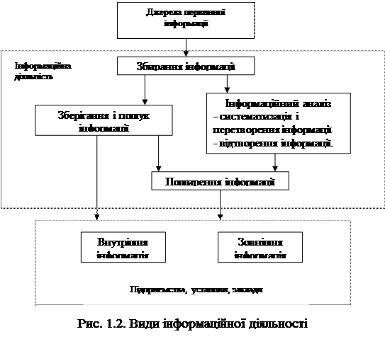 Будем называть информационной ту деятельностью деятельность, которая связана с осуществлением информационных процессов, что отвечает терминологии Закона Украины “Об информации”.