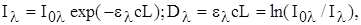 где I0λ, Iλ – интенсивность монохроматического излучения на входе и выходе камеры длиной L, заполненной определяемым компонентом с конценрацией с и коэффициентом спектрального поглощения ελ; Dλ – оптическая плотность смеси газов.