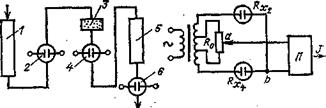 Принципиальная гидравлическая и Электрическая схемы кислородомера •представлены на рис. 17.19. Анализируемый раствор, прошедший предварительную подготовку, поступает на •фильтр смешанного действия /, где •производится снижение исходной электропроводности пробы до 0,05 мкСм/ [/см. Обессоленная проба пропускается [через кондуктометрический преобразователь 2, а затем поступает в патрон 3, заполненный металлическим таллием. Изменение электропроводности пробы после таллиевого патрона фиксируется кондуктометрическим преобразователем 4. Для очистки воды от продуктов таллия на выходе прибора установлены фильтр 5 и контрольный кондуктометрический преобразователь 6.
