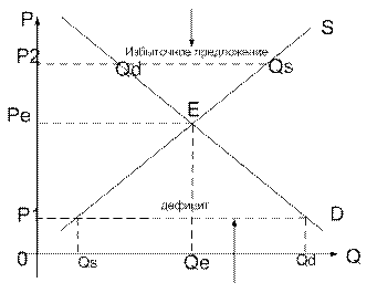 Процесс установления равновесия в коротком периоде лучше описывается с помощью модели Вальраса, когда, например, избыточный спрос ведет к повышению цены до равновесного значения. Для анализа достижения равновесия в длительном периоде удобнее пользоваться моделью Маршалла, в которой объем предложения возрастает, если цена спроса превышает цену предложения.