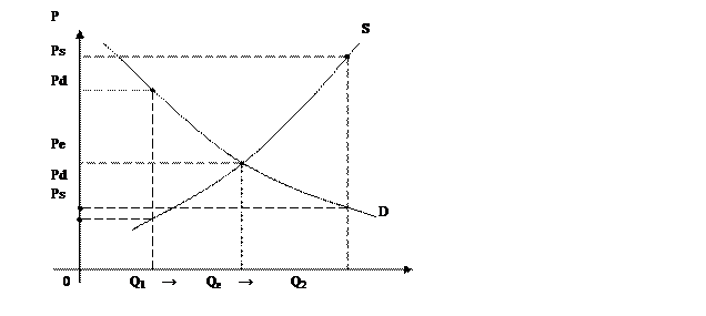 2. Главным в подходе А.Маршалла является разность цен Р1 и Р2. Маршалл исходит из того, что продавцы, прежде всего реагируют на разность цены спроса и цены предложения.Чем больше этот разрыв, тем больше стимулов для роста (или сокращения) предложения. Увеличение (или сокращение) объема предложения уменьшает эту разницу и тем самым способствует достижению равновесной цены.Модель Маршала используется для объяснения рыночного равновесия в долгосрочном периоде. В этой модели активная роль принадлежит продавцу, поставщику продукции. При этом продавец сориентирован на соотношение цен спроса и предложения. Если цена спроса больше цены предложения, то продавец увеличивает поставки товара на рынок, а если цена предложения больше цены спроса, то уменьшаются поставки до тех пор, пока не придёт к равновесному объёму на данном рынке.
