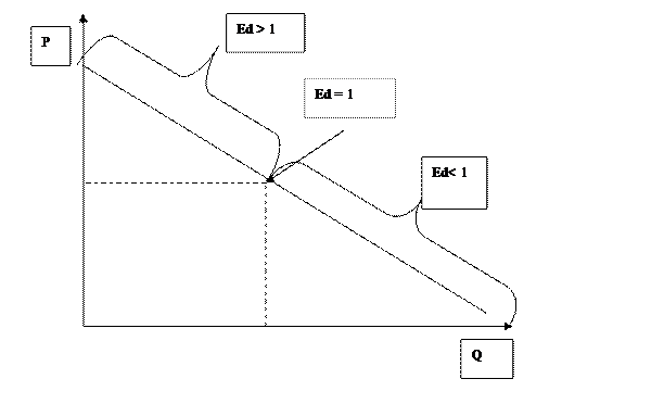 Заметим, что в точке, которая делит прямую линию спроса пополам, эластичность всегда равна – 1. На отрезке выше этой точки спрос в любой точке эластичный, ниже - неэластичный в любой точке. Эти утверждения можно легко доказать, зная формулу определения эластичности и элементарную геометрию.
